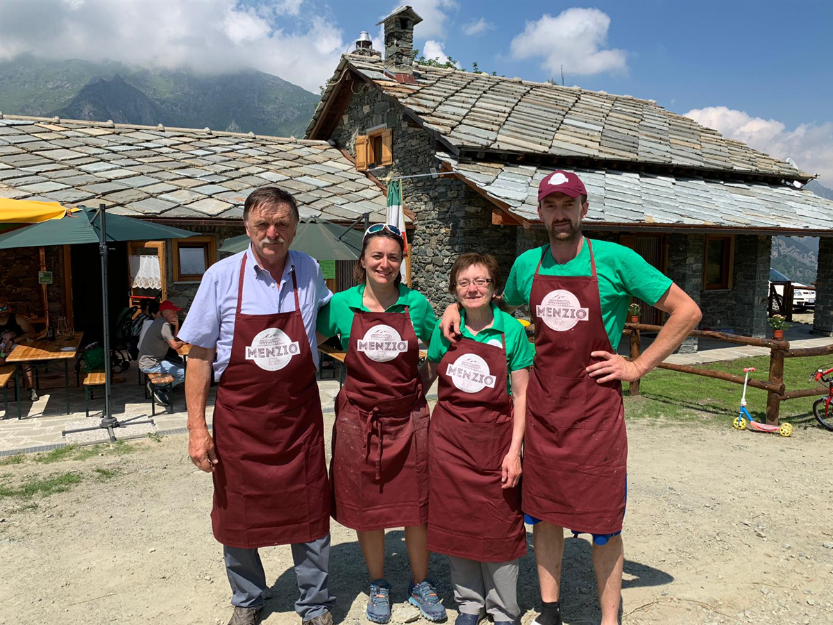I gestori dellalpeggio Da sinistra Menzio Giuseppe, Menzio Chiara, Piovano Anna Maria, Menzio Matteo