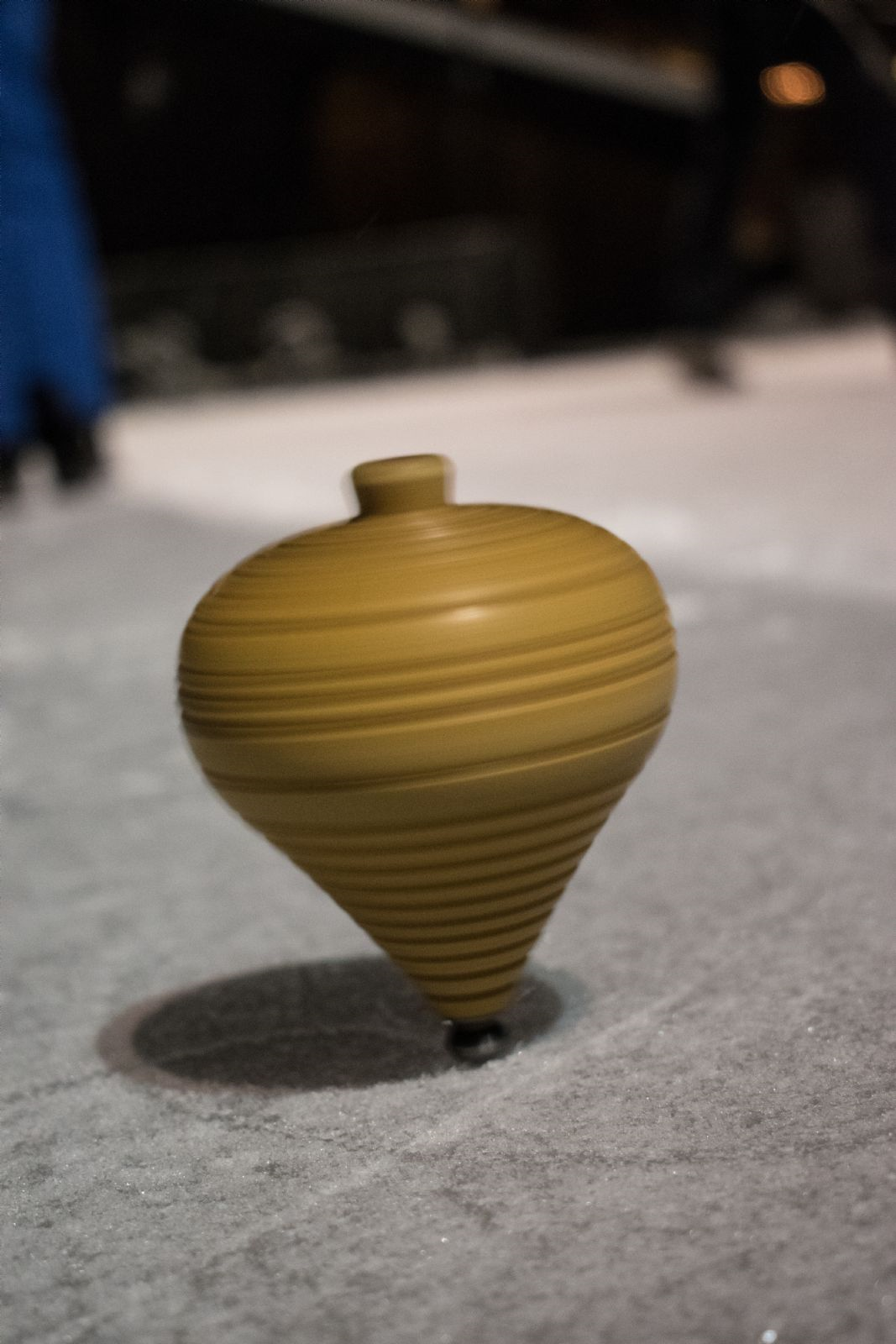 La sotula trottola in perfetto equilibrio sul ghiaccio