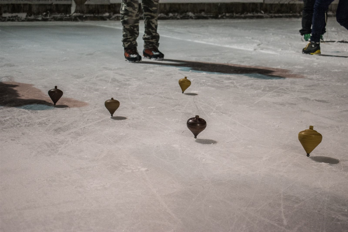 La sotula trottola in perfetto equilibrio sul ghiaccio